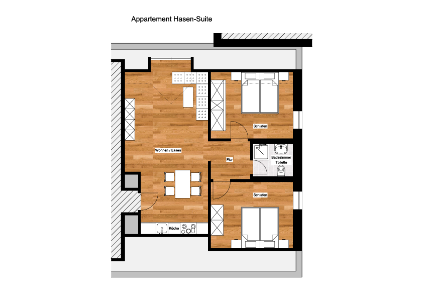 = Saison A = Saison B = Saison C| Alle Preise pro Tag | Saison A11.04. - 23.05.202612.09. - 03.10.202607.11. - 19.12.2026 | Saison B06.06. - 27.06.202603.10. - 07.11.2026 | Saison C23.05. - 06.06.202627.06. - 12.09.202619.12.2026 - 06.01.2027 | | ohne Verpflegung | ohne Verpflegung | ohne Verpflegung | | |  | Belegung mit 3-5 Personen, ca. 83 m² | pro Tag | für 2 Erw. + 1 Kin. | € 173,- | € 183,- | € 193,- | | für 2 Erw. + 2 Kin. | € 183,- | € 193,- | € 203,- | | für 2 Erw. + 3 Kin. | € 193,- | € 203,- | € 213,- | | |  | Belegung mit 3-5 Personen, ca. 80 m² | pro Tag | für 2 Erw. + 1 Kin. | € 130,- | € 140,- | € 150,- | | für 2 Erw. + 2 Kin. | € 140,- | € 150,- | € 160,- | | für 2 Erw. + 3 Kin. | € 150,- | € 160,- | € 170,- | | |  | Belegung mit 3-5 Personen, ca. 58 m² | pro Tag | für 2 Erw. + 1 Kin. | € 145,- | € 155,- | € 165,- | | für 2 Erw. + 2 Kin. | € 155,- | € 165,- | € 175,- | | |  | Belegung mit 3-5 Personen, ca. 60 m² | pro Tag | für 2 Erw. + 1 Kin. | € 145,- | € 155,- | € 165,- | | für 2 Erw. + 2 Kin. | € 155,- | € 165,- | € 175,- | | für 2 Erw. + 3 Kin. | € 165,- | € 175,- | € 185,- | | |  | Belegung mit 3 Personen, ca. 55 m² | pro Tag | für 2 Erw. + 1 Kin. | € 120,- | € 128,- | € 135,- | | |  | Belegung mit 3 Personen, ca. 55 m² | pro Tag | für 2 Erw. + 1 Kin. | € 120,- | € 128,- | € 135,- | | |  | Belegung mit 3-4 Personen, ca. 55 m² | pro Tag | für 2 Erw. + 1 Kin. | € 130,- | € 140,- | € 150,- | | für 2 Erw. + 2 Kin. | € 140,- | € 150,- | € 160,- | | |  | Belegung mit 2-3 Personen, ca. 45 m² | pro Tag | für 1 Erw. + 1 Kin. | € 100,- | € 110,- | € 120,- | | für 2 Erw. + 1 Kin. | € 110,- | € 120,- | € 130,- | | |  | Belegung mit 1-2 Personen, ca. 20 m² | pro Tag | für 1 Person | € 63,- | € 63,- | € 65,- | | für 2 Personen | € 73,- | € 73,- | € 75,- | | für 1 Erw. + 1 Kin. | € 73,- | € 73,- | € 75,- | | |