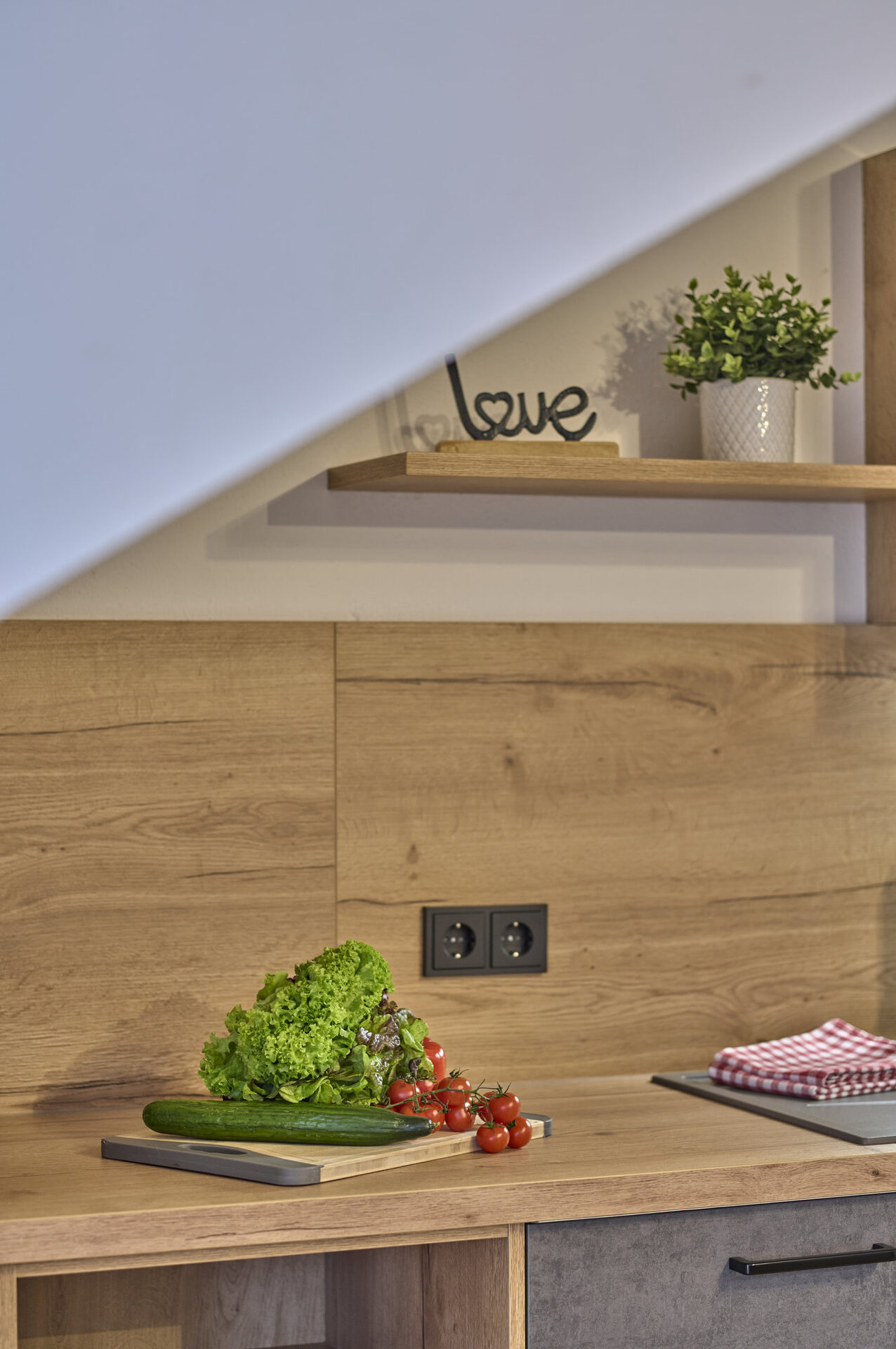 - Wohnküche bestehend aus: Komfortküche mit Geschirrspüler, Mikrowelle, Kaffeemaschine, Toaster, Wasserkocher, Mixer, Eierkocher