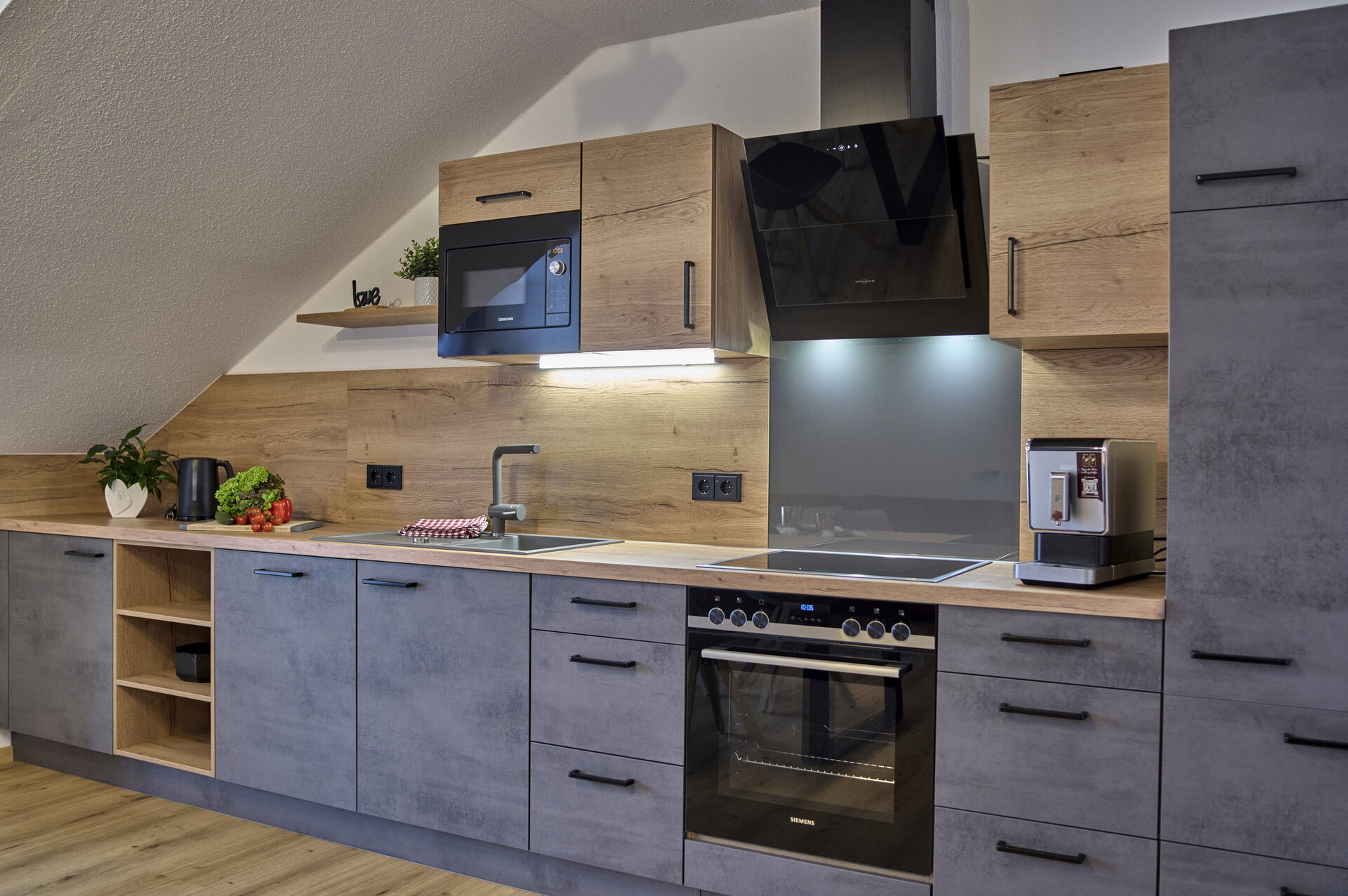 - Einbauküche mit Kaffeemaschine, Toaster, Wasserkocher, Mixer, Eierkocher