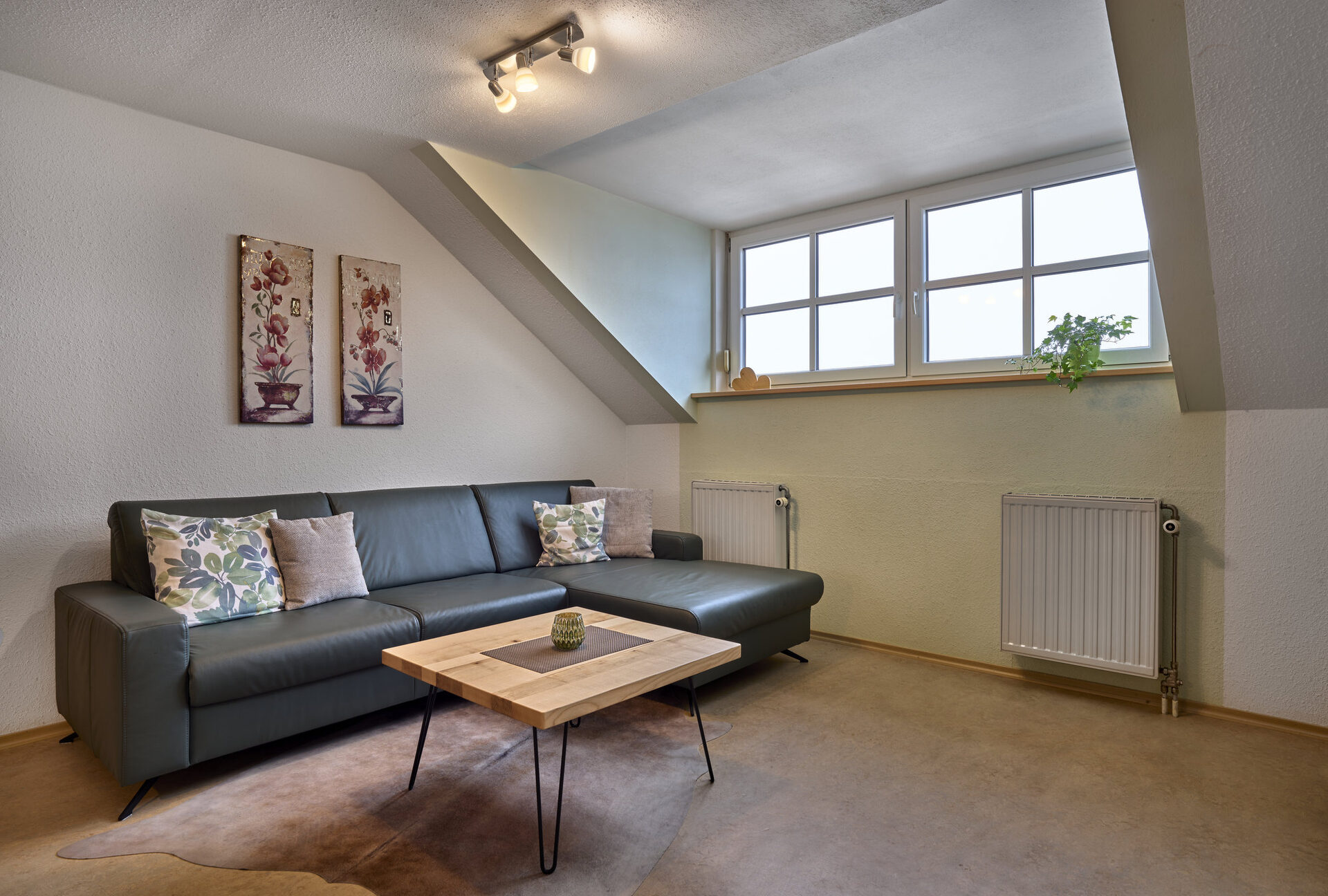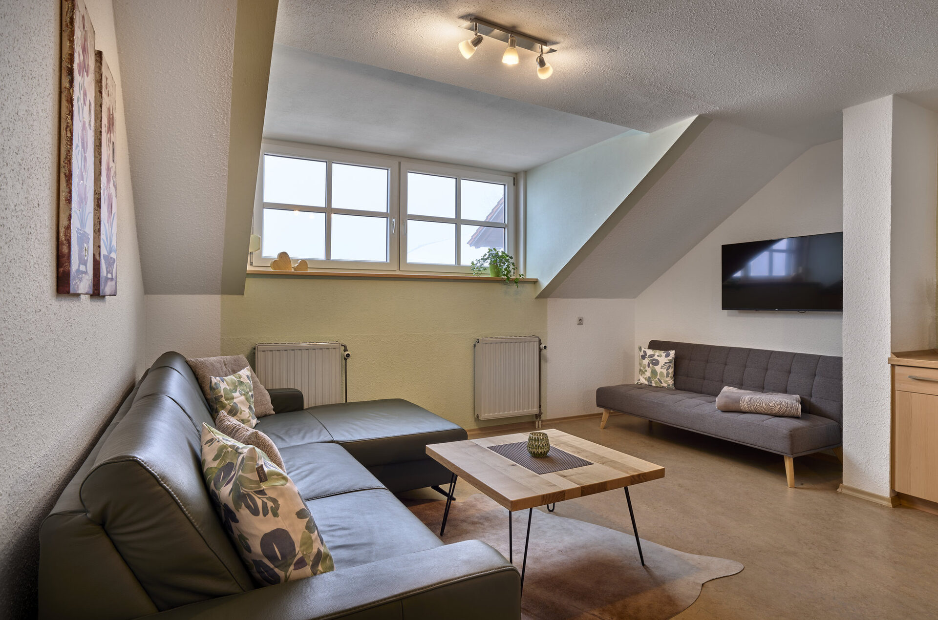 - gemütlicher Wohnraum mit großer Couchgarnitur